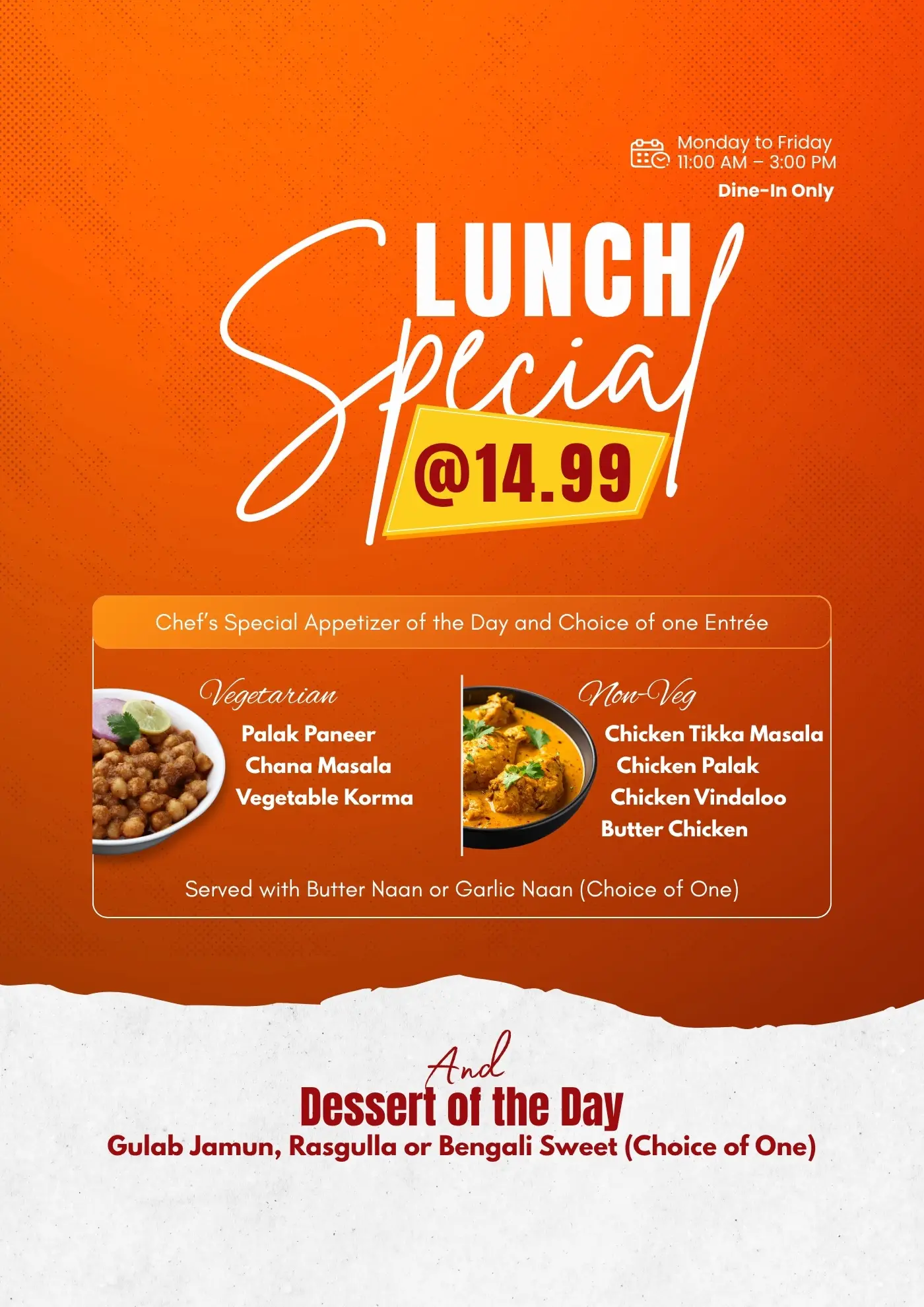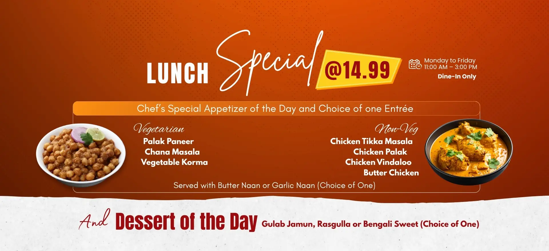 At Tabla, we take pride in serving the freshest Indian food every day. From traditional favorites to Indo-Chinese specialties, our menu combines bold flavors and quality ingredients to make every meal memorable. Whether it’s a lunch break, a family dinner, or takeout after work, locals trust us for consistent taste and satisfaction.