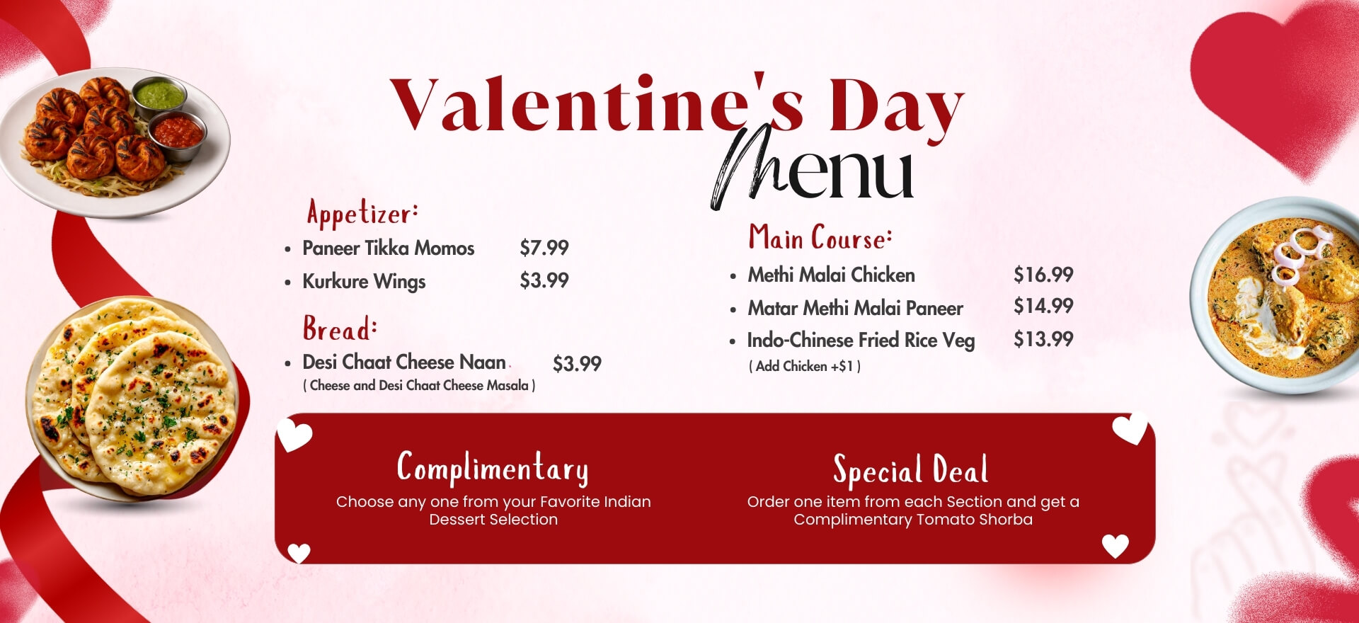 Our menu caters to all dietary preferences, including vegetarian, vegan, and gluten-free options. Guests can enjoy South Indian classics, Indo-Chinese treats, and hearty North Indian curries, making Tabla Indian Restaurant a favorite among families and food lovers.