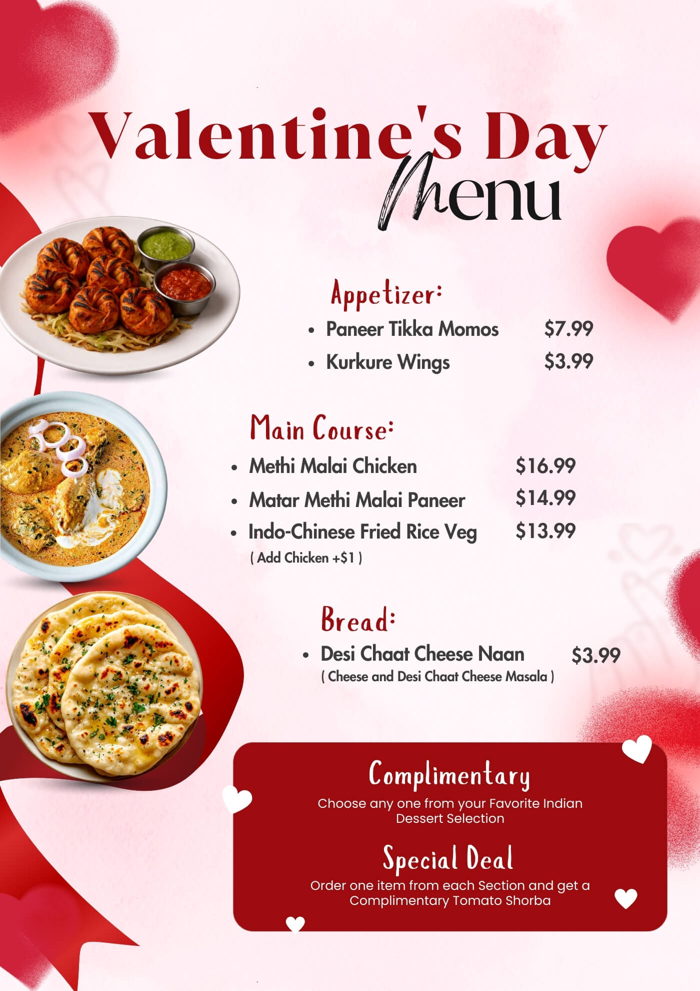 At Tabla, we take pride in serving the freshest Indian food every day. From traditional favorites to Indo-Chinese specialties, our menu combines bold flavors and quality ingredients to make every meal memorable. Whether it’s a lunch break, a family dinner, or takeout after work, locals trust us for consistent taste and satisfaction.